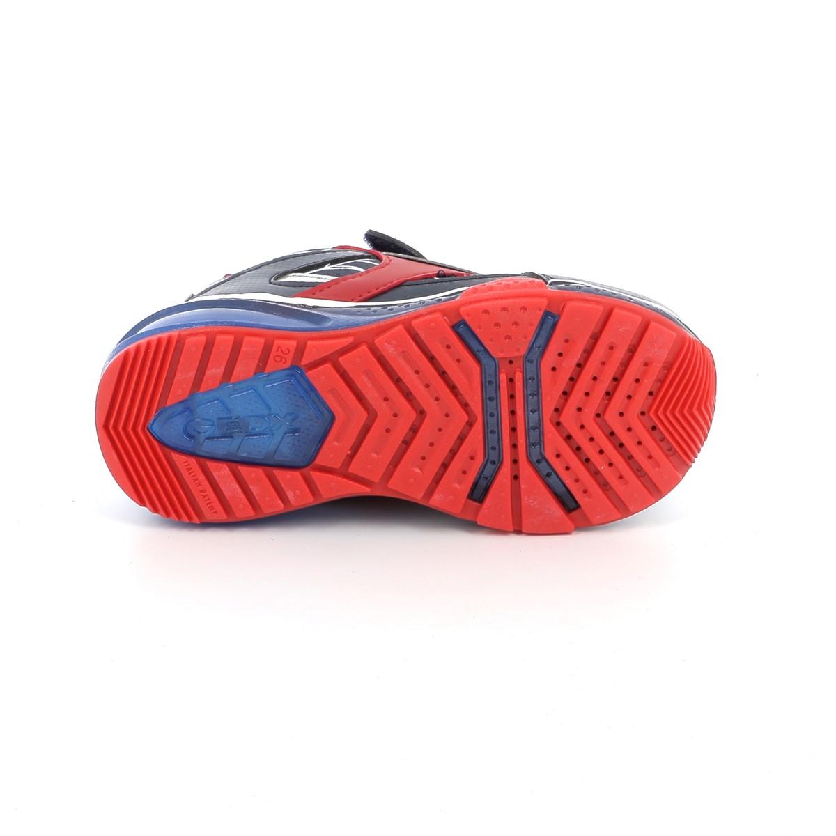 Κατασκευασμένο από συνδυασμό συνθετικών και υφασμάτινων υλικών, προσφέρει ελαφριά αίσθηση και ανθεκτικότητα. Η τεχνολογία Geox Respira® συμβάλλει στη διαπνοή του ποδιού, ενώ ο ανατομικός πάτος και η αντικραδασμική σόλα βοηθούν σε σταθερό και άνετο βάδισμα. Τα ενσωματωμένα LED φωτάκια στη σόλα ενεργοποιούνται με την κίνηση, προσφέροντας εντυπωσιακό αποτέλεσμα.